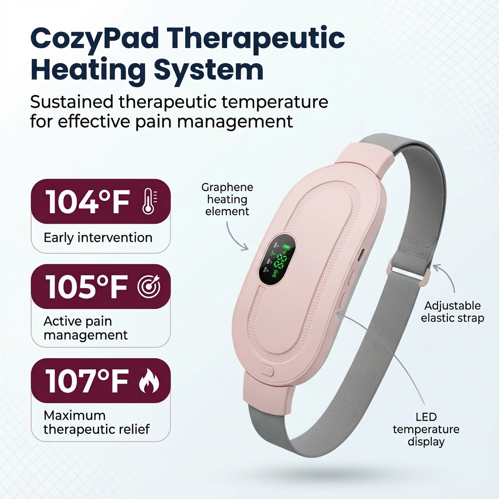 ∙ 105°F (Active Management): Use for moderate cramping (pain level 4-5)